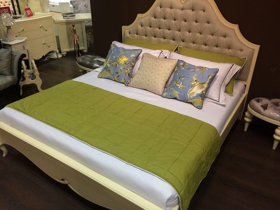 В комплект входит: покрывало; простынь; плед; 7 декоративных подушек.