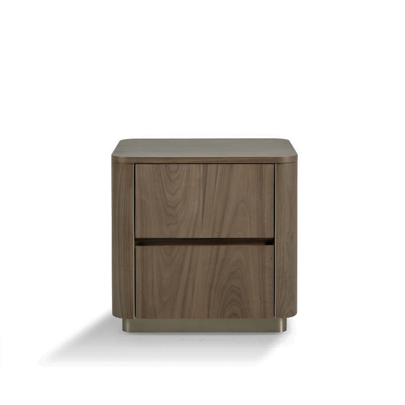 Прикроватная тумбочка от итальянского бренда Fratelli Barri. Тумба оснащена двумя выдвижными ящиками, благодаря им можно обеспечить удобное и организованное хранение. Ящики c плавным закрытием "soft close". Основная отделка корпуса - шпон американского ореха. Цоколь и детали из нержавеющей стали.