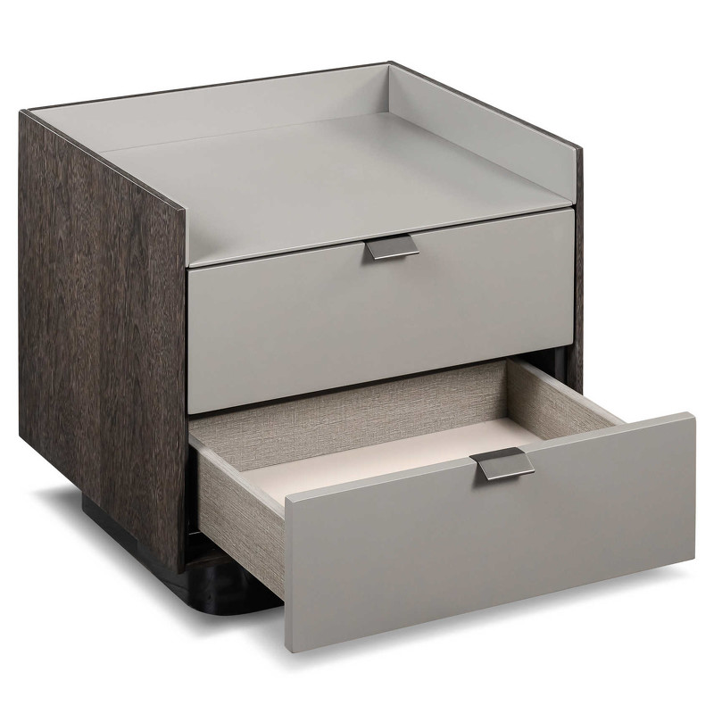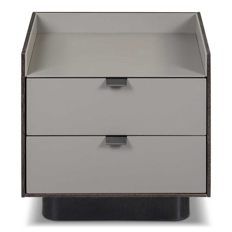 Прикроватная тумбочка от итальянского бренда Fratelli Barri. Каркас из высококачественной МДФ. Боковины выполнены в отделке шпоном дымчатого дуба, фасады ящиков — в отделке матовым лаком. Основание тумбочки изготовлено из темного металла. Тумбочка оснащена 2 выдвижными ящиками с системой закрывания soft-closing. Данный предмет — часть новой коллекции Concept от Fratelli Barri, включающей всю корпусную мебель для спальни, гостиной и столовой. Вы можете оформить интерьер вашей квартиры или дома в едином стиле.