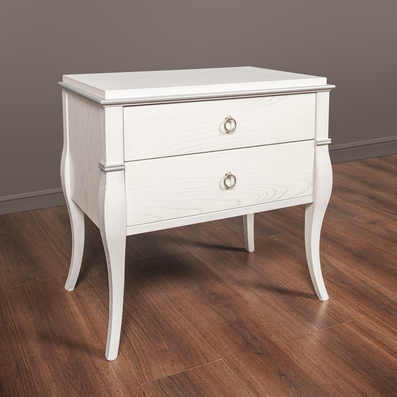 Прикроватная тумбочка на высоких ножках. Оснащена двумя выдвижными ящиками. Мебель “Primavera Премиум” изготавливается из шпонированного ДСП и натурального дерева ясень. Текстура дерева выделена методом «броширования». Внутренние детали корпусов шкафов из ДСП ламинат лен. Применена современная фурнитура, позволяющая значительно сократить и упростить сборку изделия. Ящики установлены на направляющих скрытого монтажа с демпфированием.