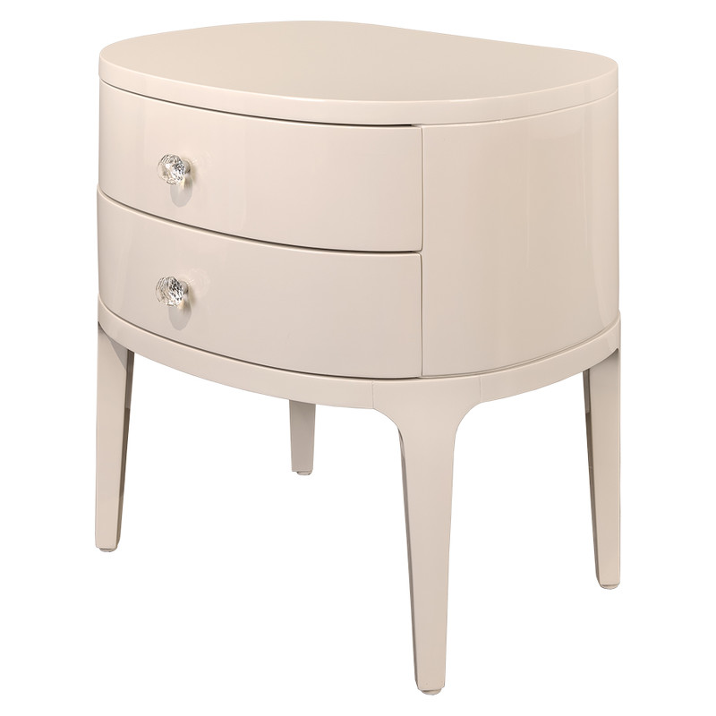 Прикроватная тумбочка на высоких ножках выполнена в стиле ар деко. Оснащена 2 выдвижными ящиками. Скругленные углы и плавные линии подчеркивают оригинальность модели. Ручки-хрусталики как на дополнительной фотографии.