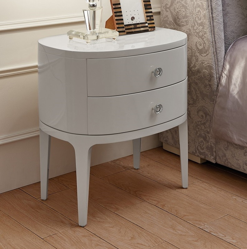 Прикроватная тумбочка на высоких ножках выполнена в стиле ар деко. Оснащена 2 выдвижными ящиками. Скругленные углы и плавные линии подчеркивают оригинальность модели.