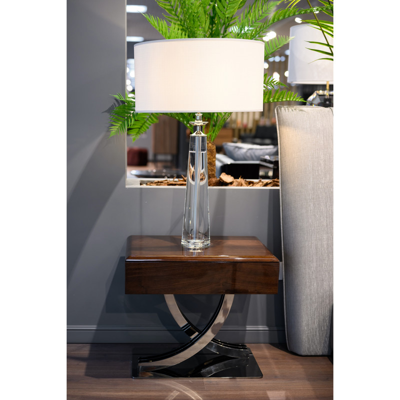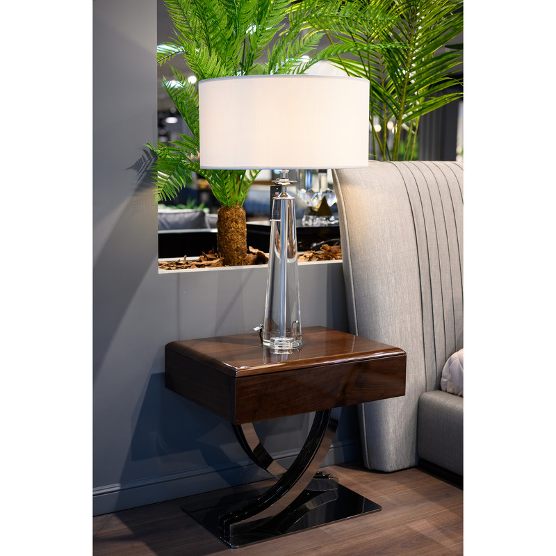 Прикроватная тумбочка выполнена в стиле Ар-деко. Изготовлена из высококачественного шпонированного МДФ и дополнена изогнутыми металлическими ножками. Тумбочка оснащена одним выдвижным ящиком.