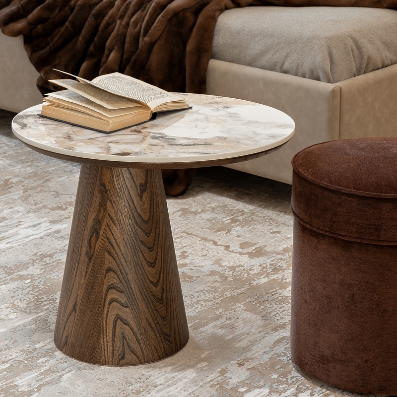 Приставной столик от итальянского бренда Fratelli Barri - идеальное дополнение для современной гостиной. Столик с акцентной овальной керамической столешницей, дополнен примечательным основанием в отделке натуральным шпоном вяза, тонированным в теплый коричневый цвет. Обращаем внимание, что керамическая столешница имеет дизайн под мрамор и всегда неповторима, поэтому рисунок на столешнице может отличаться от фото на сайте.