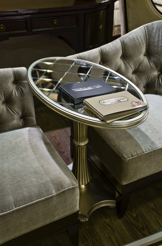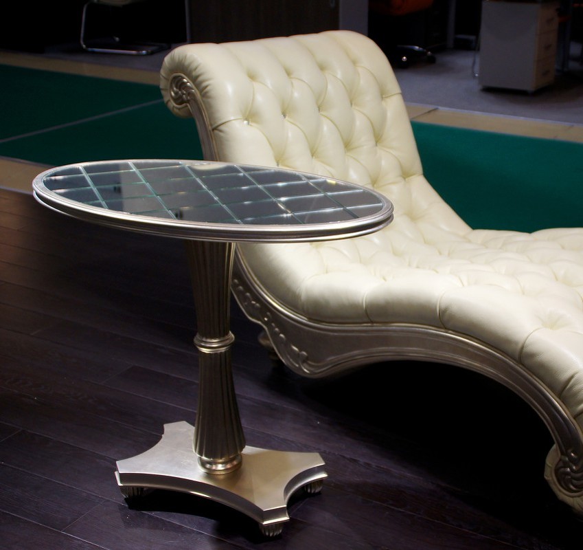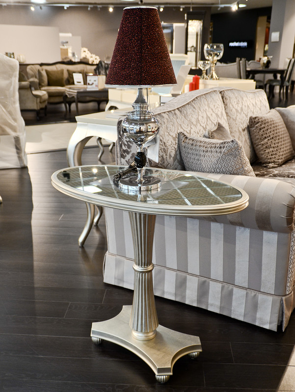 Приставной столик Florence от итальянского бренда Fratelli Barri с овальной столешницей и фигурной базой выполнен в стиле близком к классическому. Зеркальные топ придает особый шарм этому поистине изысканному предмету интерьера. Топ и база выполнены из МДФ класса Е1. Ножка - из массива дерева. Отделка - серебряное напыление, покрытое лаком.