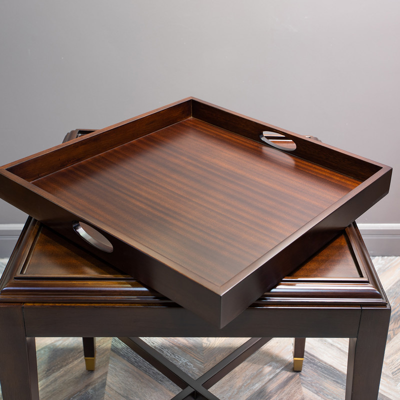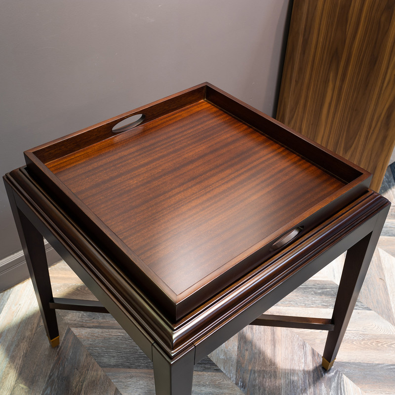 Приставной столик в стиле неоклассика от итальянского бренда Fratelli Barri. Удобный вариант для гостиной или спальни. Каркас — массив дерева и высококачественная МДФ высокой плотности, отделка — натуральный шпон махагона. Столешница дополнена подносом с ручками. Модель принадлежит к коллекции мебели Mestre в стиле неоклассика от Fratelli Barri. Здесь вы можете найти мебель для гостиной, столовой и спальни: сотни вариантов доступны для комбинации друг с другом.