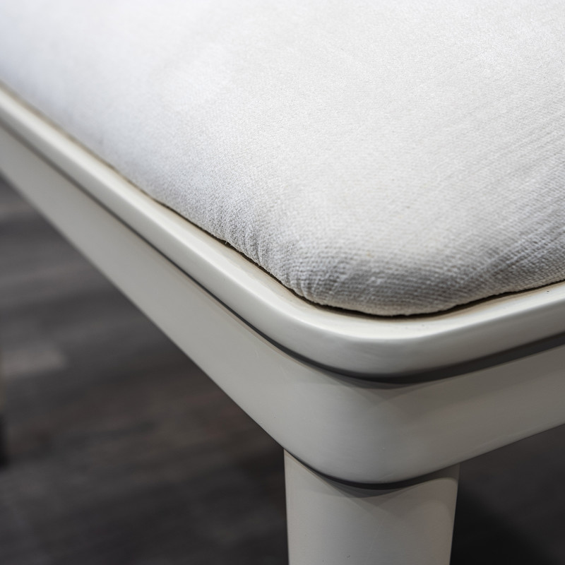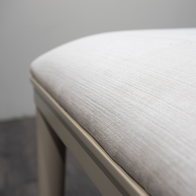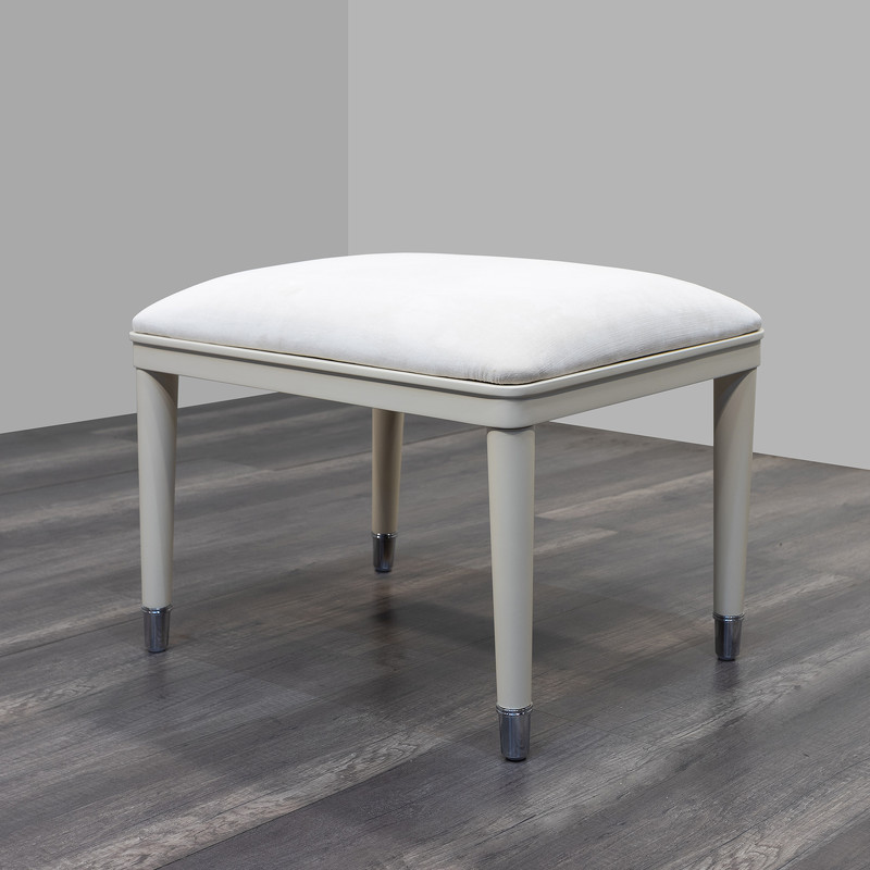 Пуфик от итальянского бренда Fratelli Barri. Отделка - бежевый матовый лак. На ножках металлические колпачки. Выполнен из массива дерева и высококачественного МДФ класса Е1. Сиденье обито тканью из ассортимента фабрики в бежевых тонах. Тип ткани - велюр. Состав ткани - 80% полиэстер, 20% нейлон. Цвет фурнитуры - хром.