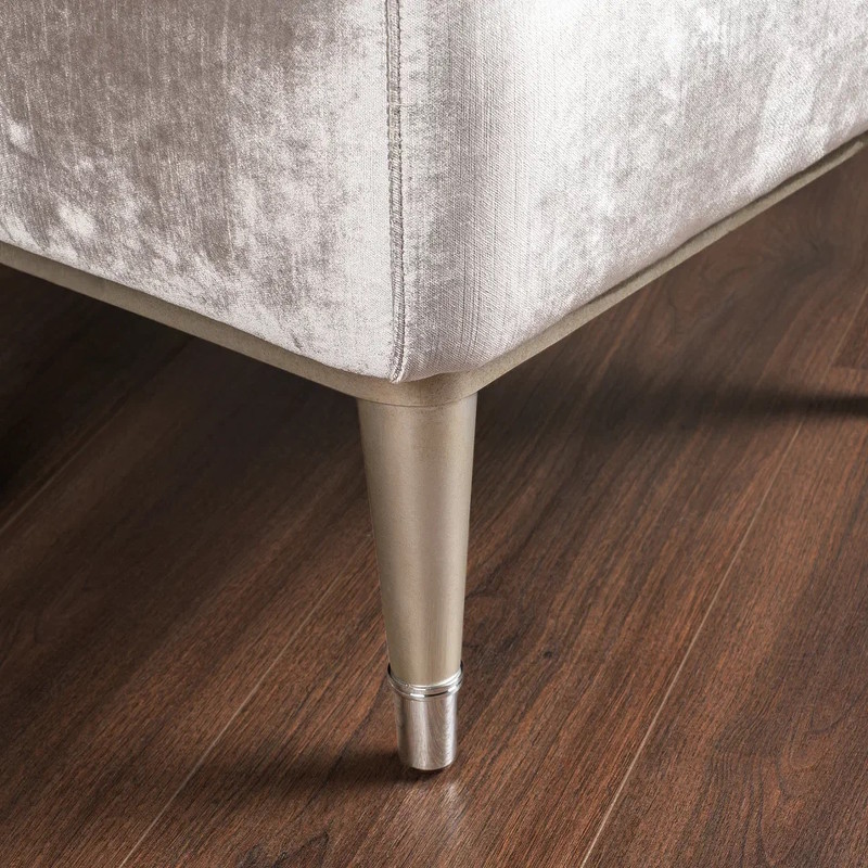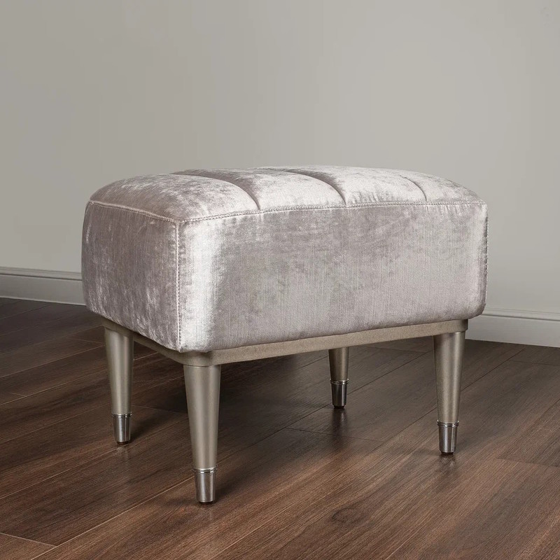Лаконичный пуфик от итальянского бренда Fratelli Barri выполнен в стиле неоклассика. Является прекрасным дополнением к консоли или как самостоятельный предмет интерьера. На ножках металлические колпачки. Каркас пуфика выполнен из натурального массива дерева. Отделка ножек - патинированное серебро. Сиденье обито тканью в серебристых тонах и декорировано стежкой. Тип ткани - велюр. Состав ткани - 100% terylene. Цвет фурнитуры - хром.