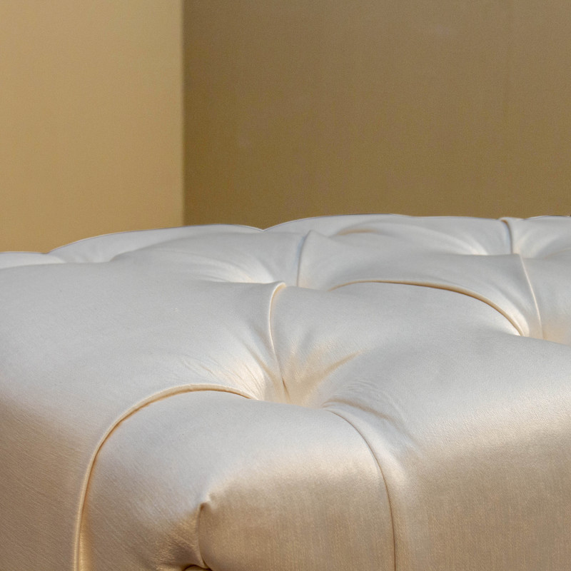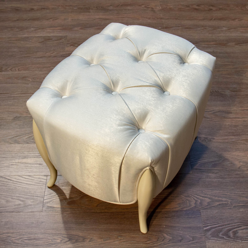 Изысканный пуфик от итальянского бренда Fratelli Barri выполнен в стиле неоклассика. Является прекрасным дополнением к интерьеру спальни или прихожей. Каркас пуфика выполнен из натурального массива дерева.Сидение обито тканью в белых тонах и декорировано стежкой "капитоне". Тип ткани - флок. Состав ткани - 100% полиэстер. Отделка ножек - бежевый матовый лак.