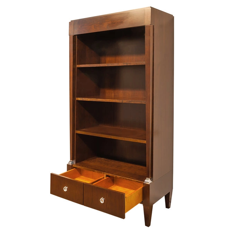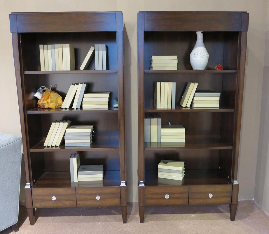 Стеллаж выполнен в стиле Неоклассика. Отделка шпон вишни cherry С. В нижней части 2 выдвижных ящика. Сделан из массива дерева и высококачественного МДФ высокой плотности. Все выдвижные ящики снабжены направляющими. На фотографии 2 стеллажа, цена указана за один!