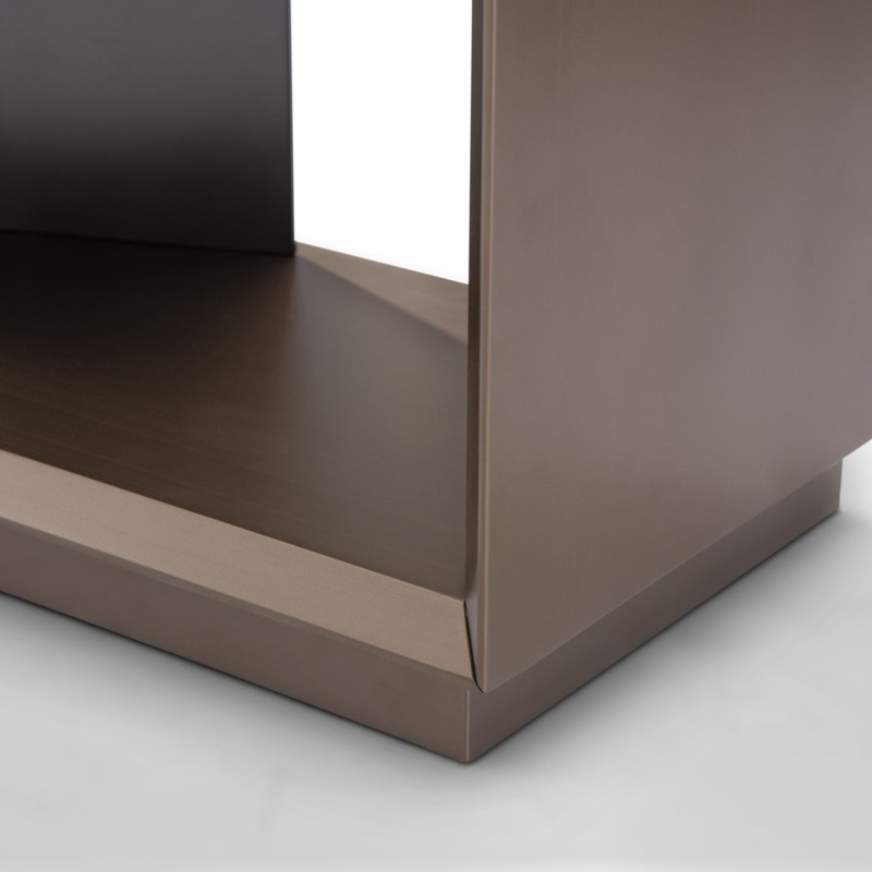 Стеллаж от итальянского бренда Fratelli Barri, выполнен в современном стиле. Модель состоит из открытых полок c акцентными вставками, где можно разместить памятные предметы, награды или книги. Основная часть выполнена из высококачественного МДФ в отделке цвета латунь. Декоративная часть металлическая в черном порошковом покрытии. Данное сочетание выглядит стильно и дорого.