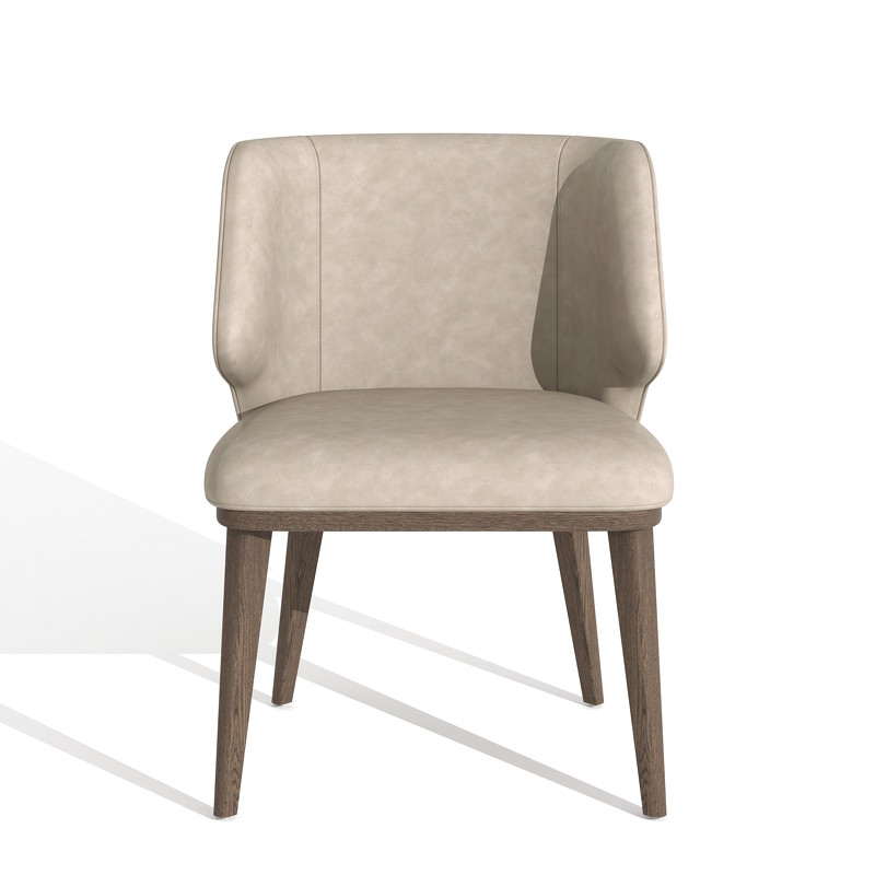 Стул от бренда Fratelli Barri - сочетание современного стиля и комфорта. Спинка стула дополнена "ушками", что добавляет поддержку спине, и обеспечивает комфорт при сидении. Обивка стула - эко-кожа в бежевых тонах. Ножки из массива дерева в отделке - натуральный шпон вяза, тонированный в теплый коричневый цвет.