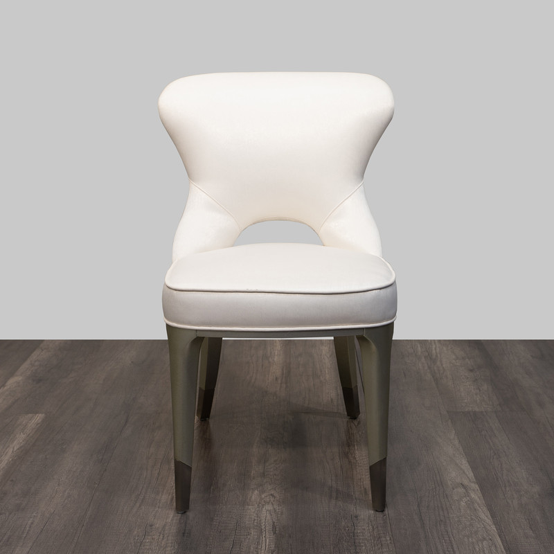 Изящный стул от итальянского бренда Fratelli Barri на прямых ножках в стиле ар-деко. Сиденье и фигурная спинка обтянуты тканью в белых тонах и декорированы кантом из той же ткани. Металлические наконечники на ножках. Изготовлен из массива дерева. Отделка ножек - лак, цвет - патинированное серебро. Цвет фурнитуры - хром. Данный стул универсальный - его можно использовать в столовой у обеденного стола, в спальне у туалетного столика или в кабинете за рабочим столом.