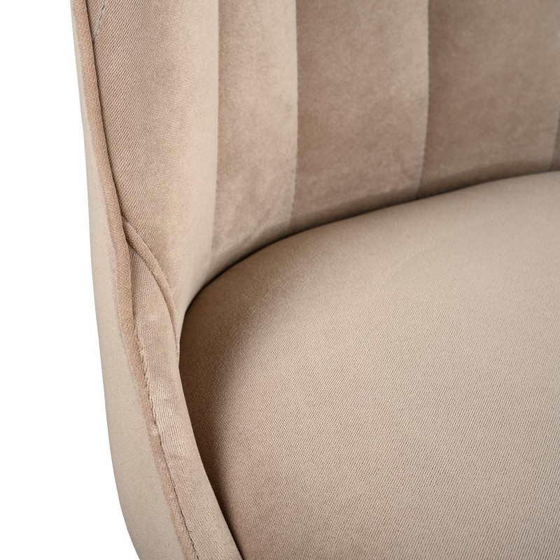 Стул выполнен в стиле Ар-деко. Каркас стула изготовлен из массива бука. Детали изготовлены из нержавеющей стали с латунным покрытием. Стул обит тканью из ассортимента фабрики. Фабрика предоставляет большой выбор тканей производства Италия, Испания, Бельгия и Турция.