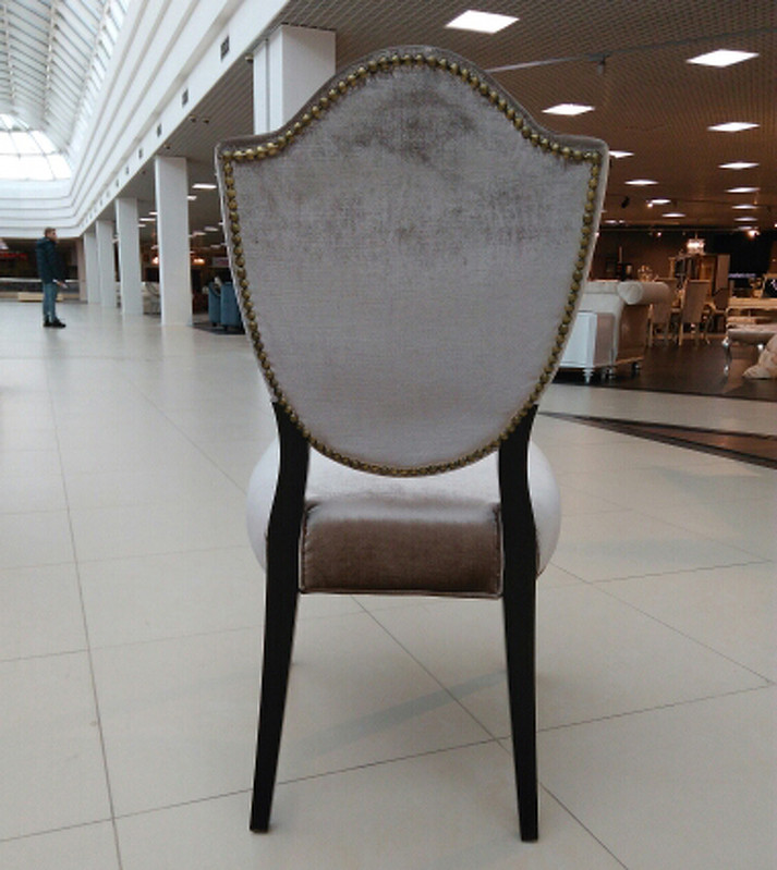 Стул выполнен в стиле Неоклассика. Ножки в отделке шпон махагон, спинка и сиденье обиты велюром. Каркас сделан из массива дерева. Высота сиденья 47 см.