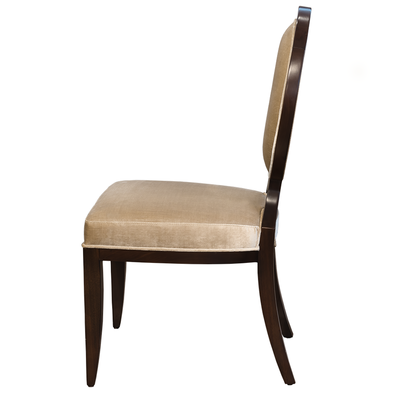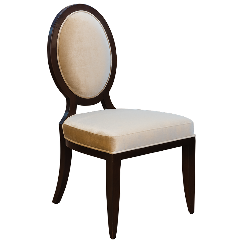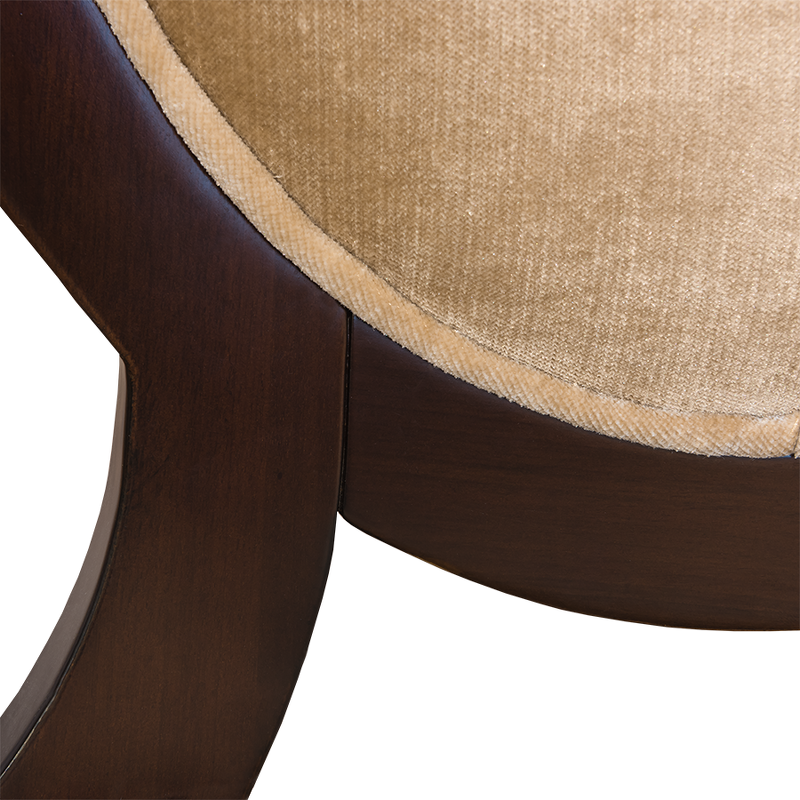 Стул Modena от итальянского бренда Fratelli Barri с медальонной спинкой в неоклассическом стиле. Стул выполнен из массива дерева. Отделка - шпон вишни. Ткань обивки из коллекции фабрики в золотисто-бежевых тонах. Тип ткани - велюр. Состав ткани - 100% terylene. Высота сиденья 47 см.