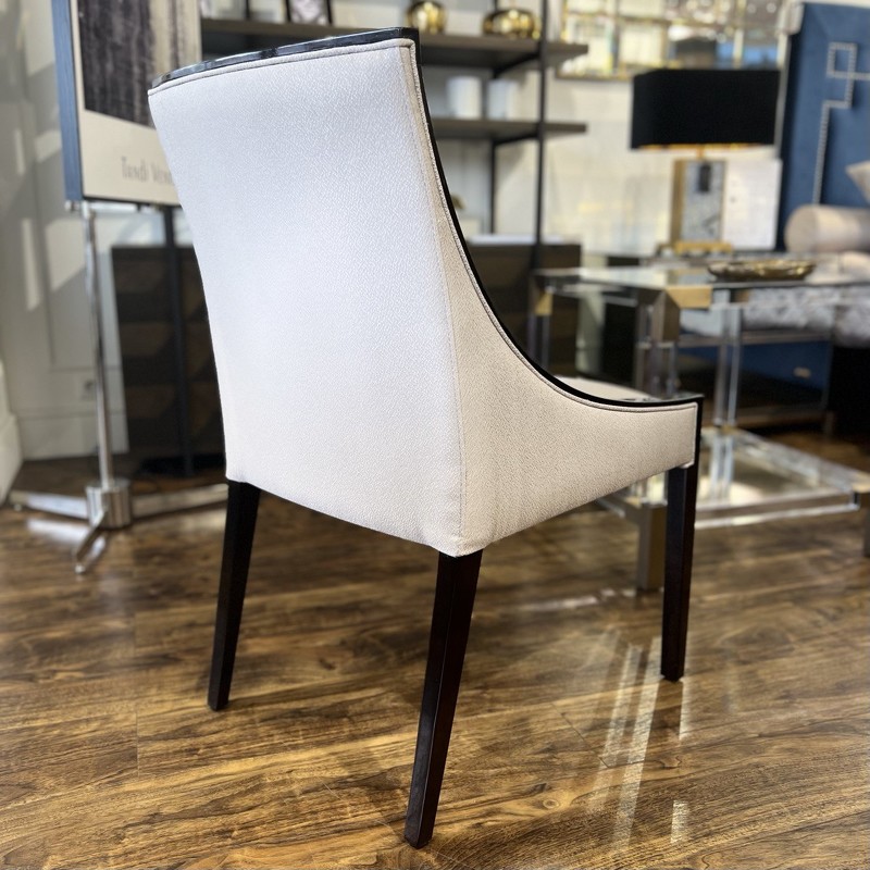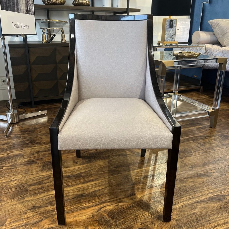 Стул с высокой спинкой, выполненный в стиле ар-деко. Каркас изготовлен из массива бука. Мягкое сидение и спинка обиты тканью из ассортимента фабрики. Фабрика предоставляет большой выбор тканей производства Италия, Испания, Бельгия и Турция.