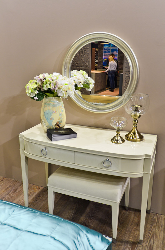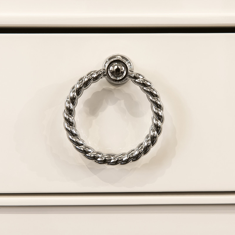 Изящный туалетный столик Modena от итальянского бренда Fratelli Barri. Столик в неоклассическом стиле, с двумя выдвижными ящиками. Закругленные фасады. Отделка - бежевый блестящий лак. На ножках металлические колпачки. Выполнен из массива дерева и высококачественного МДФ класса Е1. Цвет фурнитуры - хром. Дно ящиков декорировано черной бархатной тканью. Ящики оснащены доводчиками для плавного закрывания.