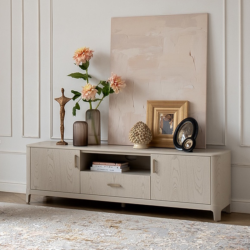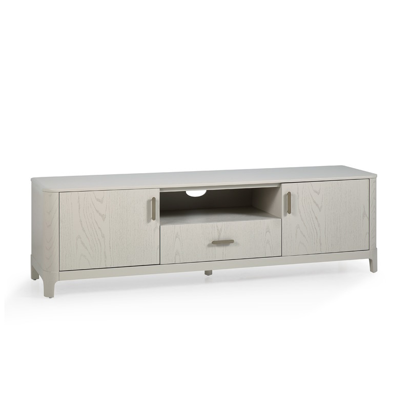 Тумба под ТВ от итальянского бренда Fratelli Barri с двумя дверками и ящиком, благодаря чему можно организовать удобное хранение. Закругленные углы тумбы делают ее эргономичной и безопасной. Корпус тумбы изготовлен из высококачественного МДФ, ножки - массив дерева, ручки металл. Отделка - натуральный шпон ясеня. Ящик со скрытыми направляющими и системой плавным закрывания "soft close".