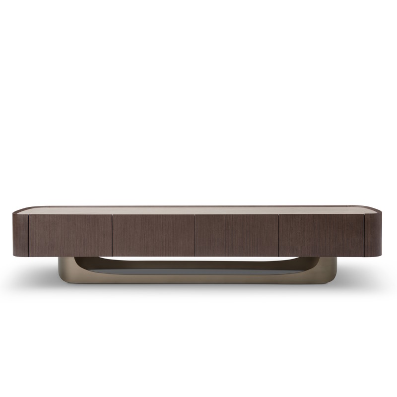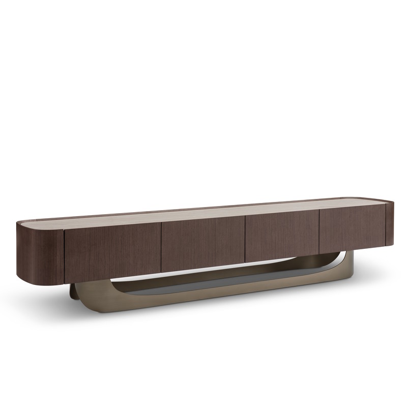 Тумба под TV от бренда Fratelli Barri, выполнена в современном стиле. Идеально дополнит ТВ зону, добавит в нее стиля и функционала. Выполнена тумба из высококачественного МДФ высокой плотности. Металлическое основание в цвете матовая латунь. Корпус в отделке крафт-шпоном — это современный отделочный материал, который создается искусственным путем из натуральной древесины. Простыми словами, это «пересобранное» дерево. Рисунок создан человеком, а не природой, но при этом материал прочнее на разрыв и стабильнее геометрически. Это дерево (на 80-90%), шпон сохраняет тактильную теплоту и запах древесины. Тумба оснащена четырьмя выдвижными ящиками, что позволяет организовать удобное хранение без визуального шума. Тумба относится к коллекции Bitti от Fratelli Barri и отлично будет сочетаться с другими предметами коллекции. Вы можете оформить интерьер вашей квартиры или дома в едином стиле.