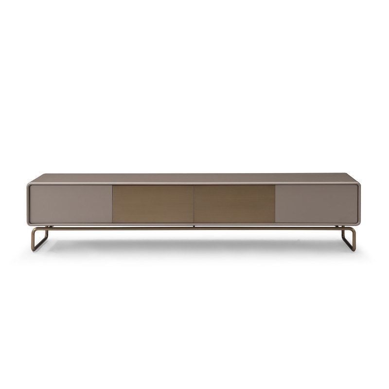 Тумба под TV от итальянского бренда Fratelli Barri, выполнена в современном стиле. Идеально дополнит ТV зону, добавив в помещение стиля и функционала. Тумба выполнена из высококачественного МДФ высокой плотности. Корпус выполнен в отделке матовым серо-бежевым лаком. Ножки и фасады ящиков в цвете бронза WJ-09. Тумба оснащена четырьмя выдвижными ящиками. Ящики оснащены механизмом "push to open".