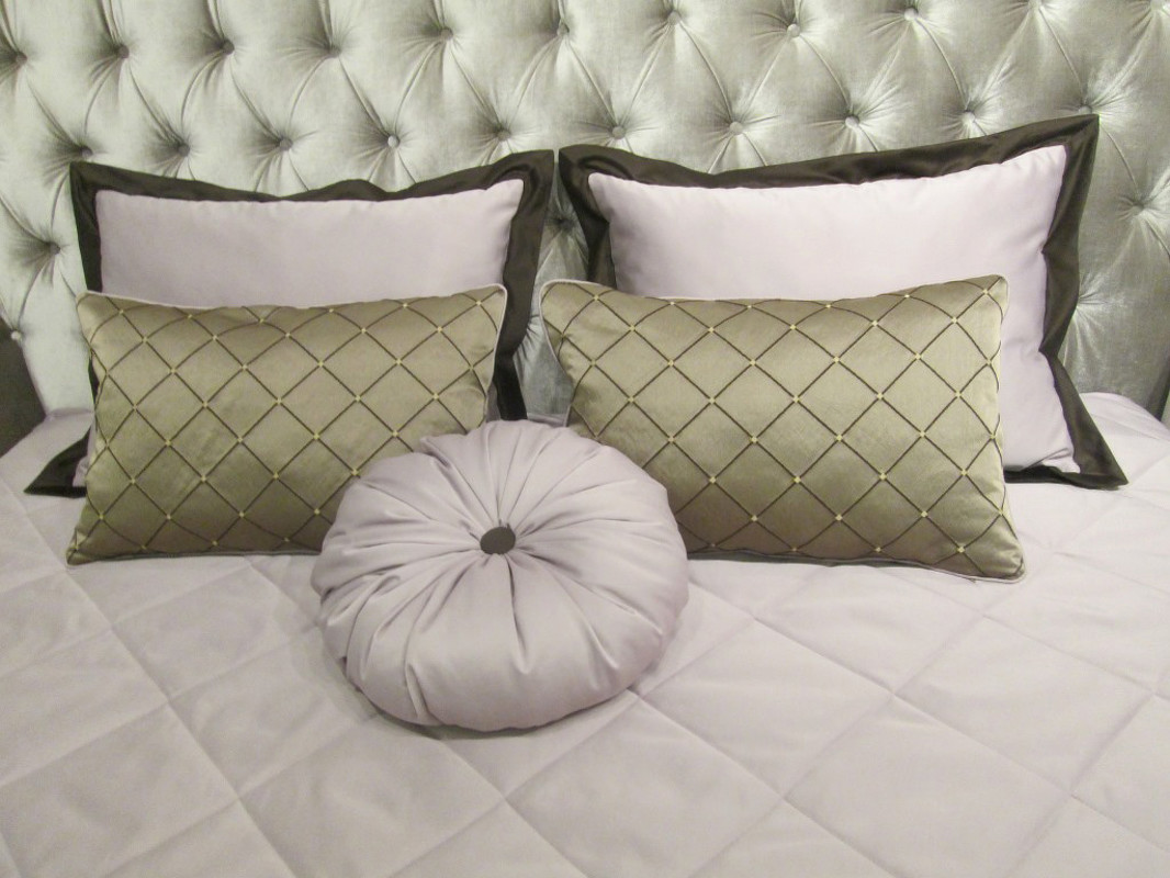 Комплект состоит из покрывала размером 240*260 см (стежка "ромб"), пледа размером 80*240 см, 2 подушек размером 50*70 см, 2 подушек размером 40*60 см, 1 подушки диаметром 45 см.