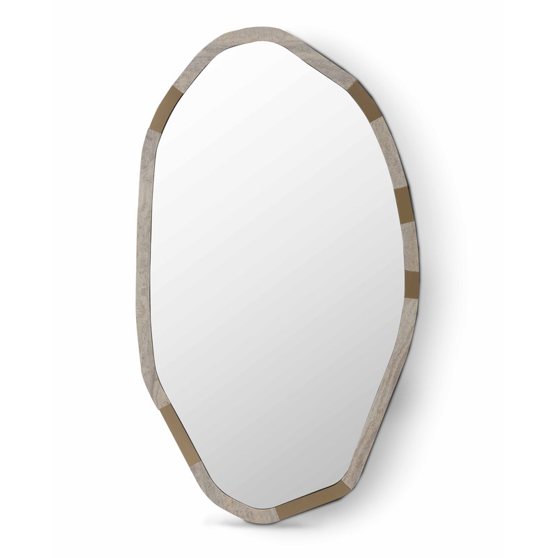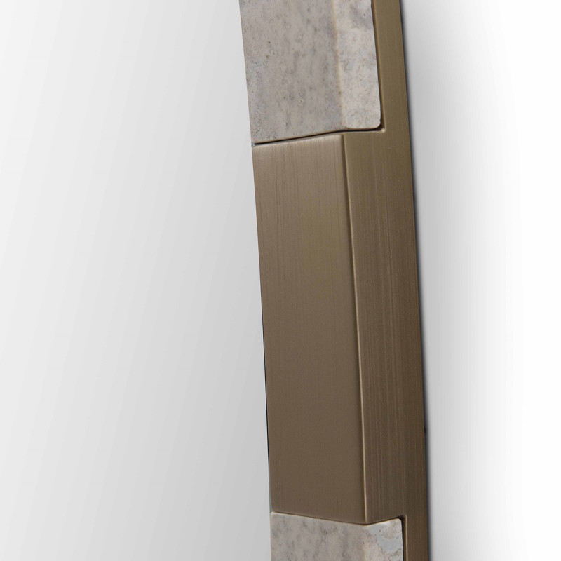 Зеркало от бренда Fratelli Barri, выполнено в современном стиле. Рама выполнена в отделке травертином и металлическими акцентными вставками.