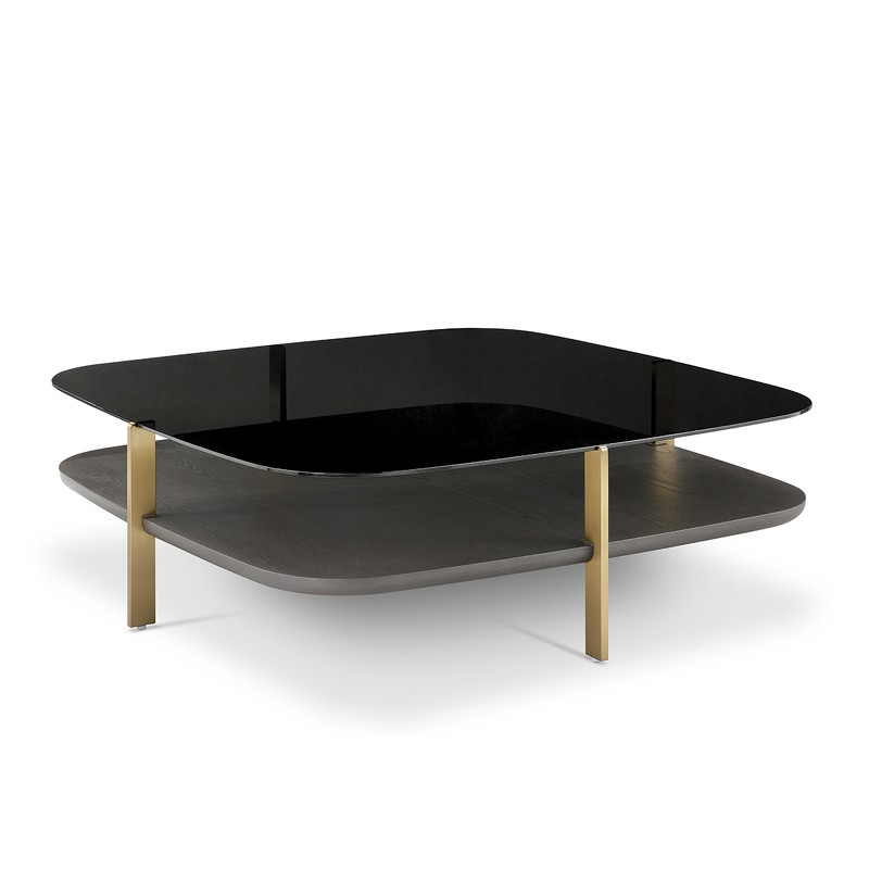 Большой журнальный столик от итальянского бренда Fratelli Barri - воплощение функционала и утонченного стиля для современной гостиной. Основание столика выполнено в цвете матовая бронза, верхняя столешница из черного закаленного стекла, нижняя в отделке темным шпоном.