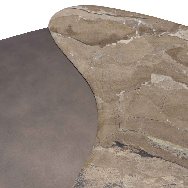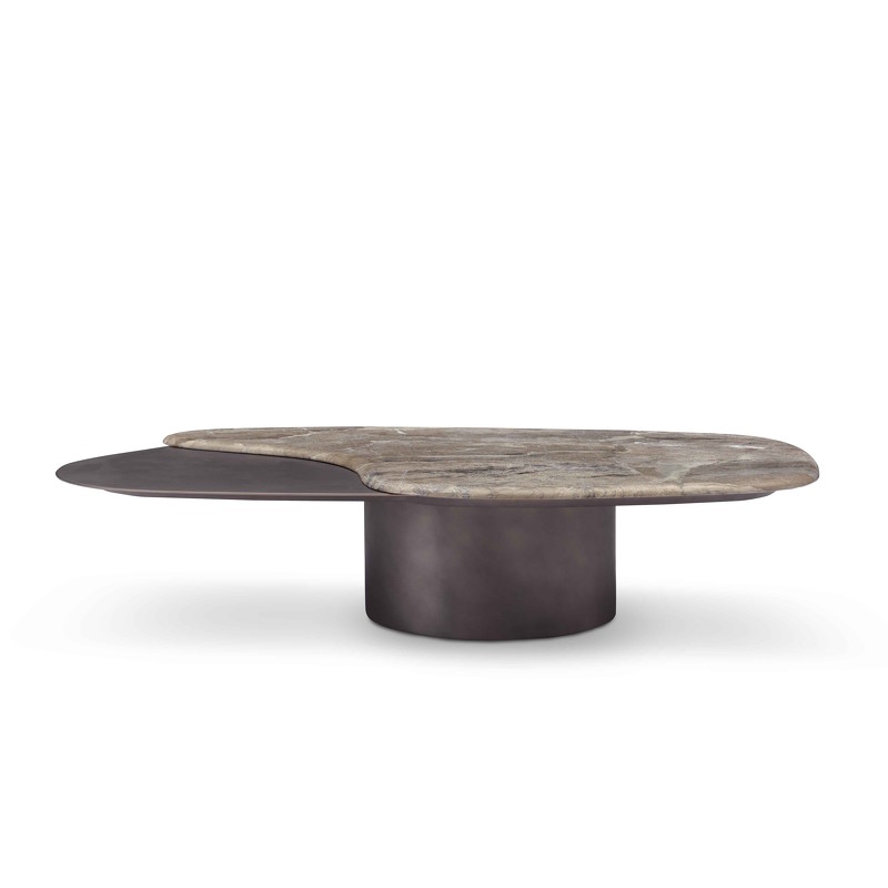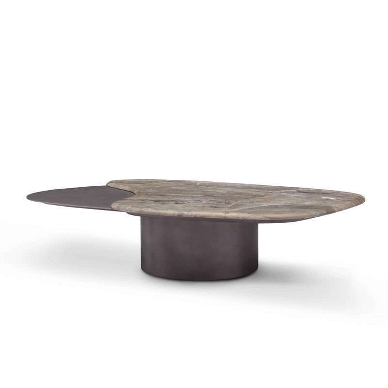 Журнальный столик от бренда Fratelli Barri - идеальное дополнение для современной гостиной. Основание стола металл в сером цвете, также и часть столешницы. Большая часть столешницы столика выполнена в мраморе, что придает столику эффектности и стиля. К столику есть пара - журнальный стол с меньшей столешницей и высотой больше.