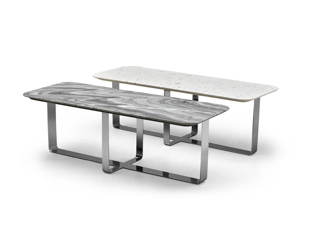 Журнальный столик выполнен в стиле Ар-деко. Металлические ножки дополнены мраморной столешницей. Ножки выполнены из полированной стали.