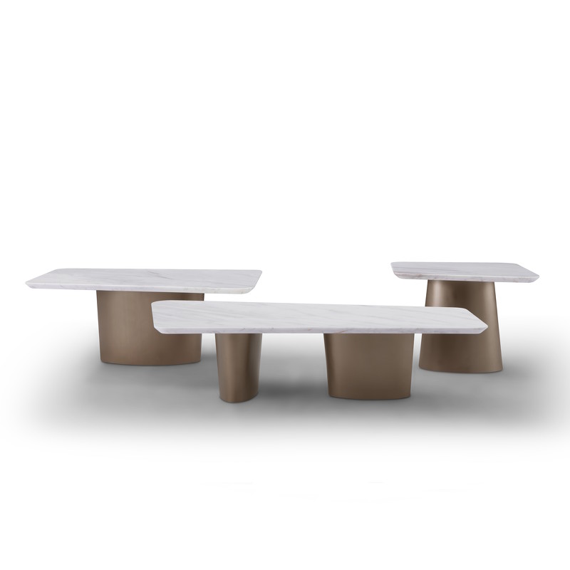 Журнальный столик от итальянского бренда Fratelli Barri - идеальное дополнение для современной гостиной. Столешница из белого мрамора. Основание в отделке цвета латунь. К столику есть дополнение в виде двух столиков других размеров. Такая группа из трех столов привнесет в помещение большего стиля и функционала, а также, интересную игру высот.