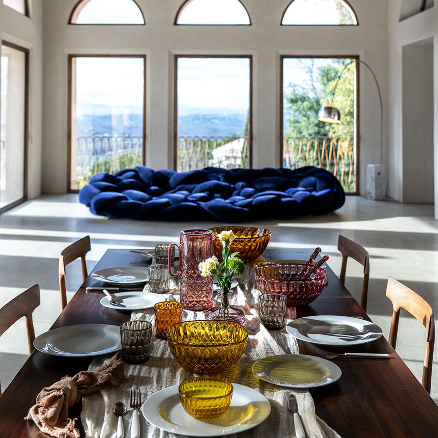 Набор чаш Vanity от итальянского бренда Guzzini – необычная посуда, в которой гармонично сочетаются привлекательный дизайн и практичность. Благодаря высокой устойчивости современного органического материала к внешним воздействиям, она идеально подходит для сервировки как в помещении, так и на свежем воздухе. Инновационное акриловое стекло на биооснове получают из растительных отходов. За счет особенной рельефной поверхности и ярких цветов предметы изящно переливаются на свету, что делает их еще более привлекательными. Концепция Vanity строится вокруг посуды с несколькими цветовыми и текстурными сочетаниями в трех хроматических настроениях: Aria, Acqua и Terra, выражающие легкость воздуха, свежесть воды и тепло земли. Материал: акриловое стекло на биооснове. Диаметр: 12 см. Всего в наборе: 6 шт. Допускается мытье в посудомоечной машине в режиме деликатной мойки.