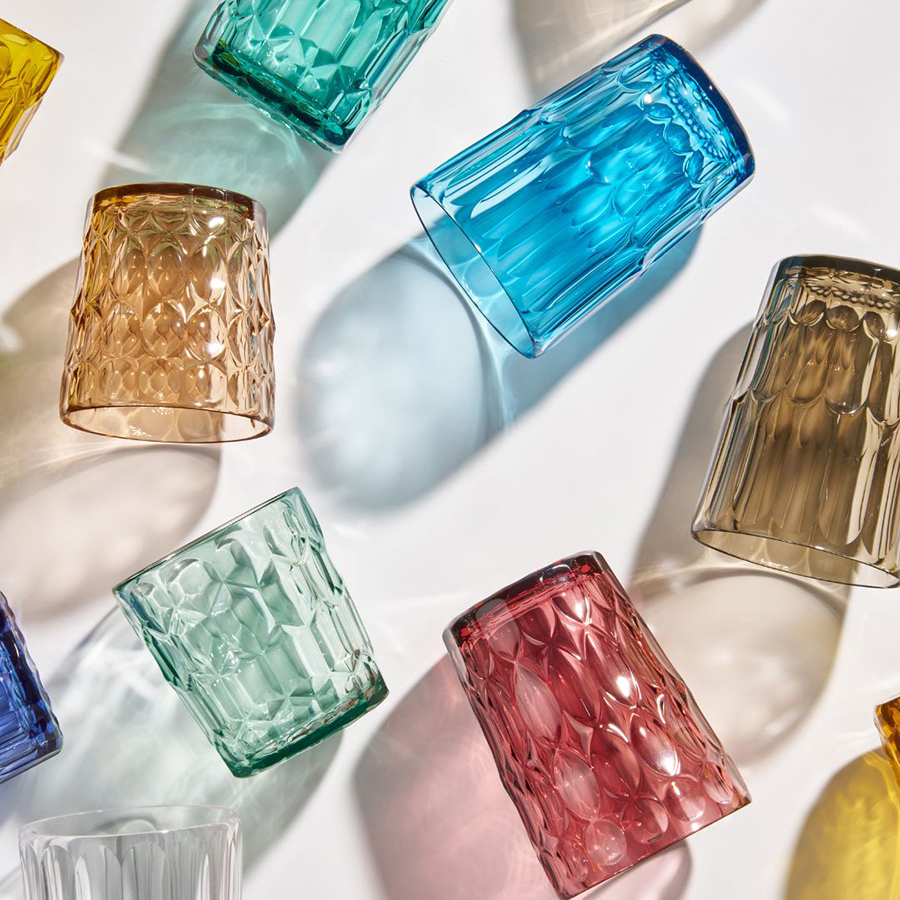 Набор из шести стаканов Vanity от итальянского бренда Guzzini – необычная посуда из специального акрилового стекла, произведенного на биооснове из современного, органического сырья, которое получается из растительных отходов. Материал на 100% подлежит вторичной переработке. За счет особенной рельефной поверхности и ярких цветов предметы изящно переливаются на свету, что делает их еще более привлекательными. Концепция Vanity строится вокруг посуды с несколькими цветовыми и текстурными сочетаниями в трех хроматических настроениях: Aria, Acqua и Terra, выражающие легкость воздуха, свежесть воды и тепло земли. Материал: акриловое стекло на биооснове. Размеры: 8,6x8,6х11,8 см. Объем: 480 мл. Всего предметов в наборе: 6 шт. Допускается мытье в посудомоечной машине в режиме деликатной мойки.