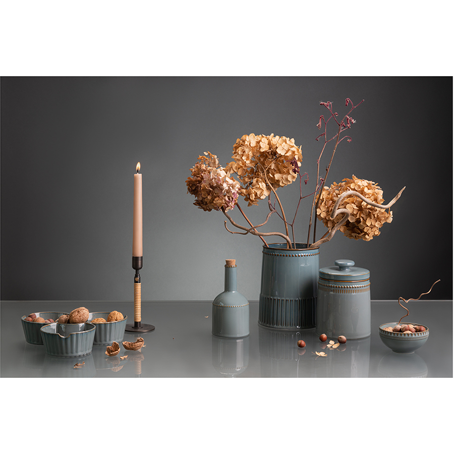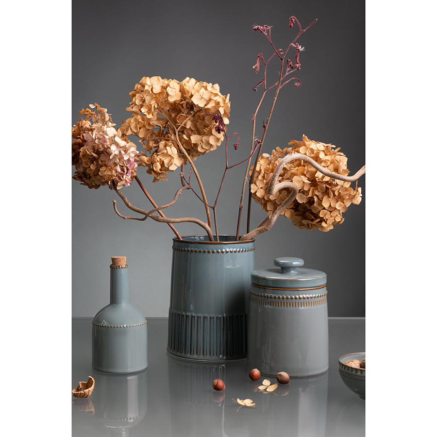 Банка для хранения темно-серого цвета из коллекции Kitchen Spirit поможет навести порядок на кухне и выигрышно дополнит любой интерьер. Емкость идеально подходит для сахара, круп, муки и других сыпучих продуктов. Посуда из фарфора с дизайном в рустикальном стиле прекрасно гармонирует с предметами сервировки из стекла, керамики, бамбука. Лаконичный фактурный декор в сочетании с глянцевой глазурью обеспечивает изделию презентабельный вид. Экологически чистый и практичный материал отличается прочностью, устойчивостью к сколам, легко моется. Все предметы из коллекции Kitchen Spirit отлично комбинируются между собой. Отличительной особенностью линейки является покрытие из реактивной глазури, которое создает на поверхности посуды уникальные узоры. Во время обжига фарфора возникает химическая реакция, обычно плавление или окисление, в результате которой и получается нужный рисунок. Благодаря такой обработке найти два идентичных изделия практически невозможно. Именно за счет своей индивидуальности и неповторимости узора столовая посуда и аксессуары для сервировки с реактивной глазурью стали трендом в мире дизайна и декора. ! Важно, что возможное неравномерное окрашивание, “подтеки” или “наплывы” глазури не являются браком. Объем: 820 мл Высота: 16,5 см Материал: фарфор ! Можно использовать в микроволновой печи ! Можно мыть в посудомоечной машине ! Можно использовать в духовке при температуре не более 200° C ! Можно замораживать