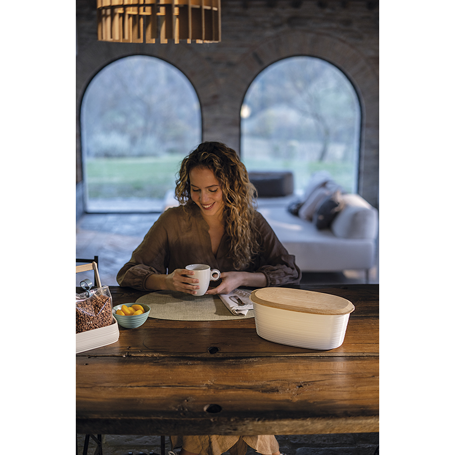 Хлебница с бамбуковой крышкой tierra, 3 л, молочная