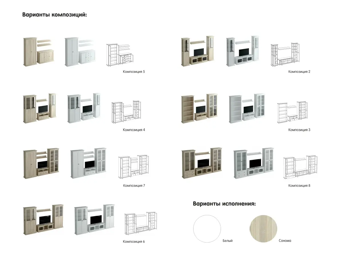 Фасад - Белый/Желтый/Дуб Бунратти/Имбирь, Корпус - Белый