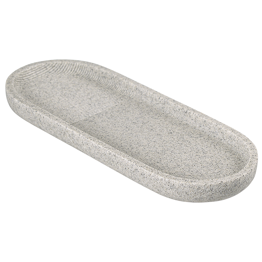 Подставка для ванных принадлежностей Loup выполнена из полирезина, стилизованного под натуральный камень темно-серого оттенка. Материал легко моется, отличается устойчивостью к влаге, ударам и царапинам, что делает его идеальным выбором для ванной комнаты. На такой подставке можно удобно разместить диспенсер для мыла и стакан для зубных щеток, чтобы защитить используемую под них поверхность от капель воды и загрязнений. Коллекция аксессуаров Loup сделает пространство вашей ванной комнаты более комфортным и функциональным. Имитация фактуры натурального камня и естественные оттенки привнесут в интерьер нотки природной элегантности. Линейка понравится поклонникам скандинавского стиля и минималистичных интерьеров, где предпочтение отдается простым формам и спокойной цветовой гамме. Материалы: полирезин. Размеры: 27,5х10,7х2,2 см. Цвет: темно-серый. Подставку можно очищать в теплой воде с помощью мягких моющих средств. Запрещается использование агрессивной бытовой химии и абразивных материалов.