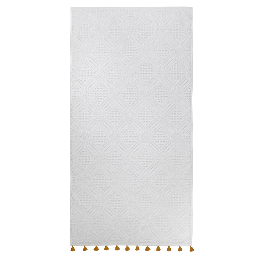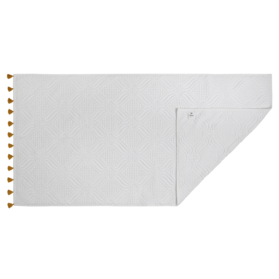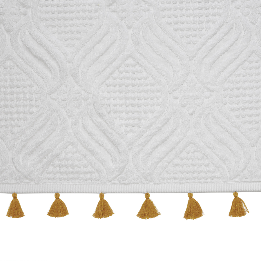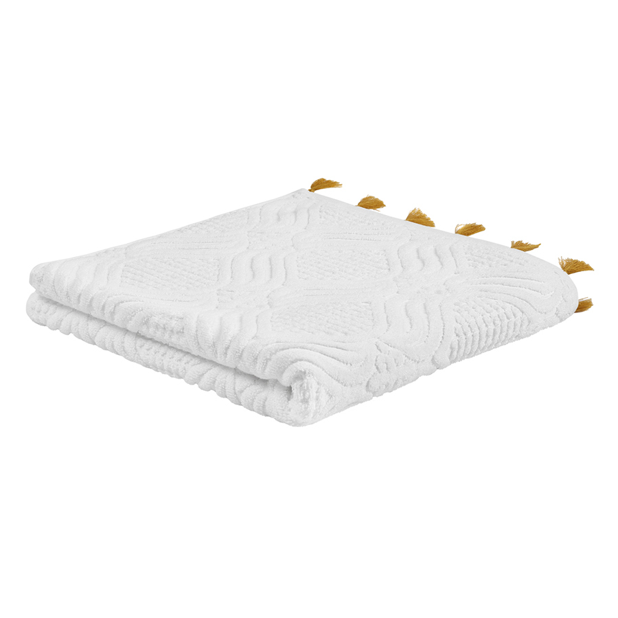 Полотенце банное белое, с кисточками цвета карри из коллекции essential, 70х140 см - купить по цене 3 490 руб в интернет-магазине StoreForHome.ru