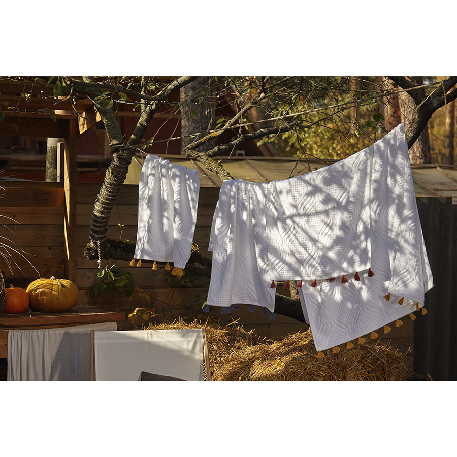 Банное полотенце из коллекции Essential – качественный текстиль из экологичного хлопка, который идеально подойдет для ежедневного использования и украсит вашу ванную комнату. Мягкая, приятная на ощупь ткань превосходно впитывает влагу и дарит комфорт при контакте с кожей. Материал абсолютно гипоаллергенен, так как не содержит синтетических волокон, при этом обладает высокими показателями прочности и износостойкости. Дизайн полотенца вдохновлен этническими мотивами, что подчеркивают декоративные элементы в виде кисточек контрастного оттенка. Материал: 100% хлопок. Плотность: 610 GSM. Размеры: 70х140 см. ! Максимальная температура стирки 40° C ! Гладить при максимальной температуре 110° C ! Барабанная сушка запрещена ! Не отбеливать ! Сухая чистка запрещена