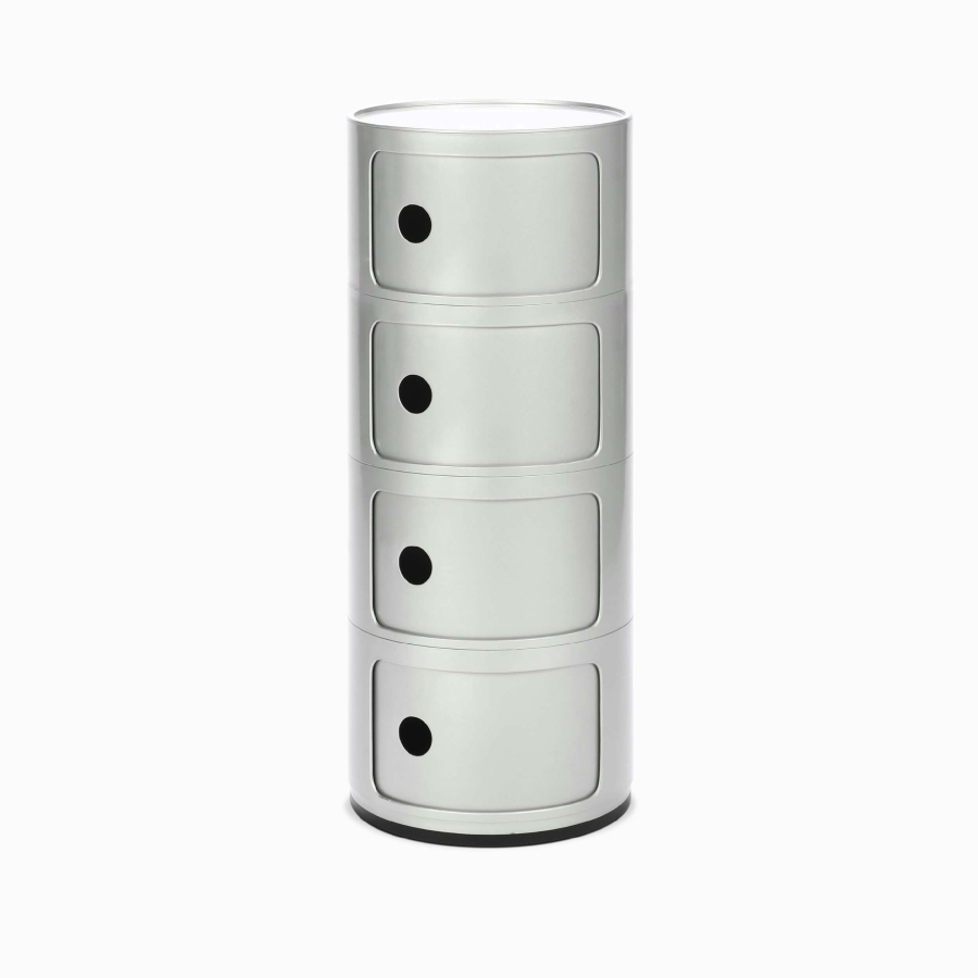 Тумба с 4 отсеками из коллекции Componibili — это функциональный и стильный элемент, который идеально подойдет для хранения различных предметов. Яркие цвета тумбы привнесут в ваше пространство веселое и интересное настроение.