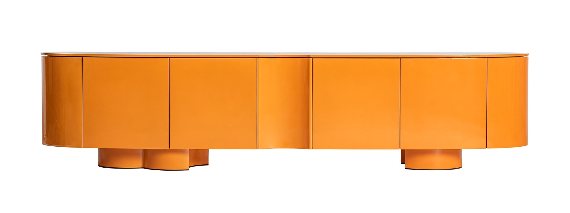 Тумба под телевизор Mirko в современном стиле, изготовлена из оранжевого дерева МДФ с лакированной отделкой в сочетании с железом. Ширина 220 см позволяет создать эффектную медиа-зону в просторной гостиной, а яркий оранжевый цвет делает тумбу смелым акцентом, который притягивает взгляд и задает настроение всему интерьеру.
