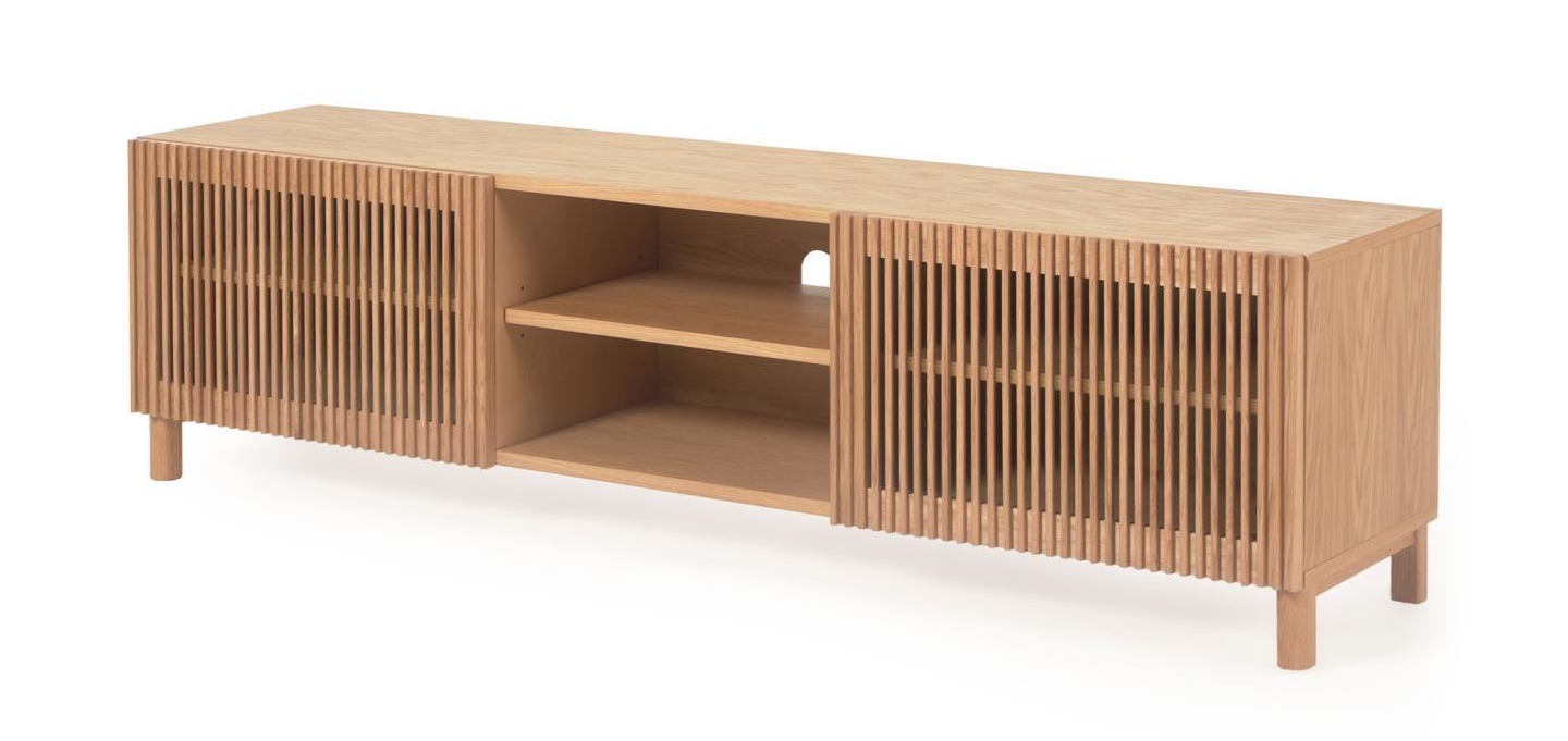Beyla сочетает в себе естественную сущность дуба с решетчатыми дверями, создавая игру света и текстуры. И это сделано с вниманием к деталям, которого заслуживает отличный дизайн. Складные двери из массива дуба и корпус из шпона дуба. Мягко закрывающиеся двери и регулируемые ножки. Ширина 180 см позволяет создать гармоничную медиа-зону в гостиной среднего и большого размера, а решетчатые фасады придают тумбе лёгкость и воздушность.