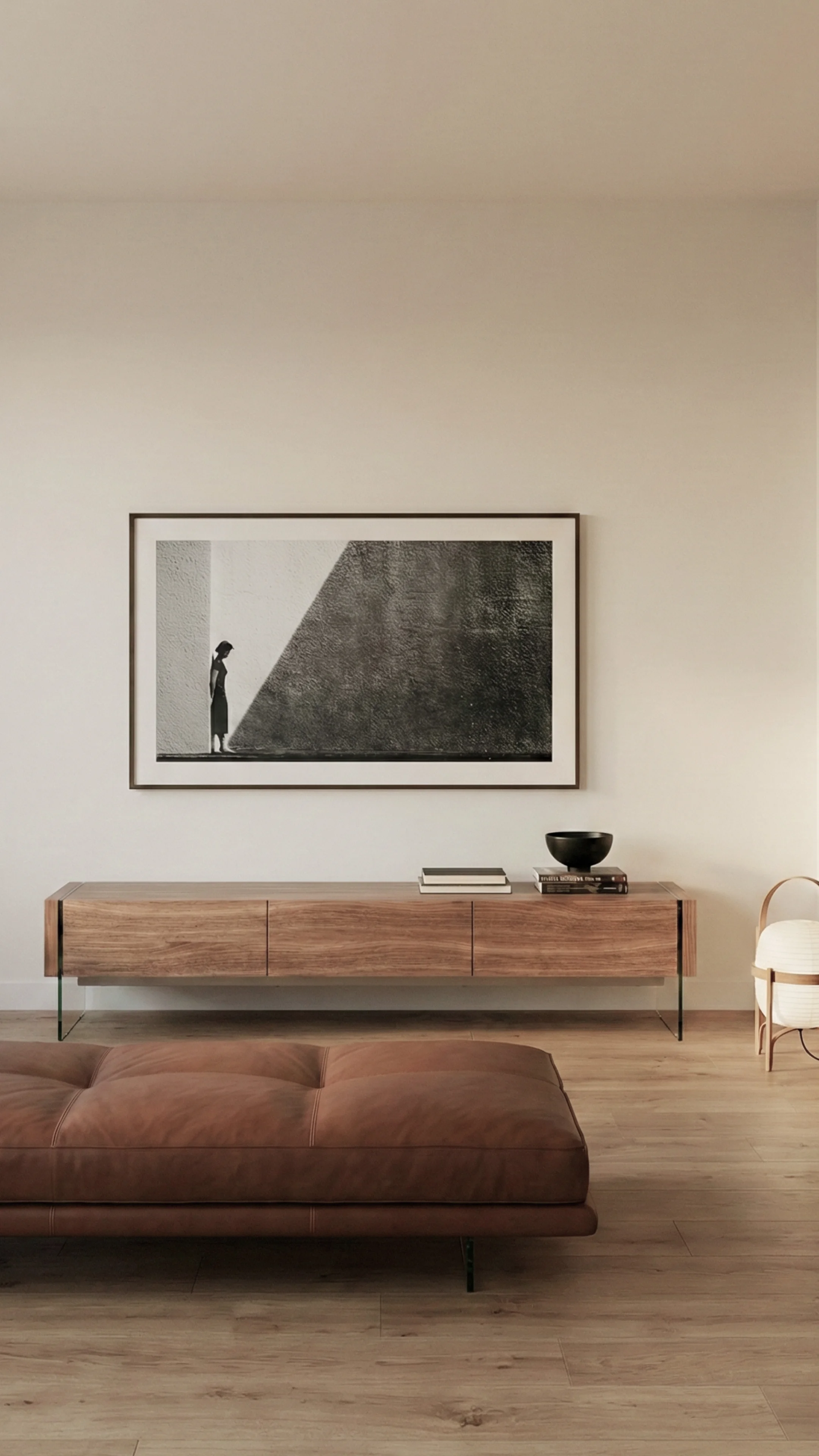 Ответ: Низкий профиль (38 см) — это дизайнерское решение, которое создает эффект легкости и позволяет телевизору "парить" над тумбой. Такая высота идеально подходит для современных интерьеров и комфортна при просмотре с низкой мебели или в зоне отдыха на полу.