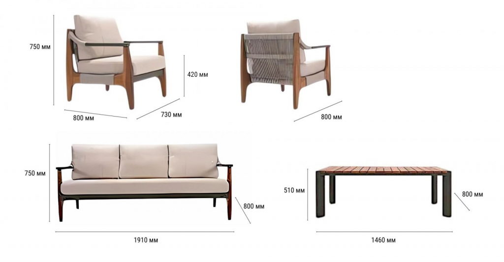 | Тип | Уличный комплект: диван + 2 кресла + столик |