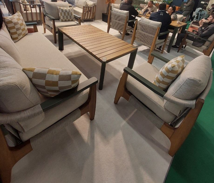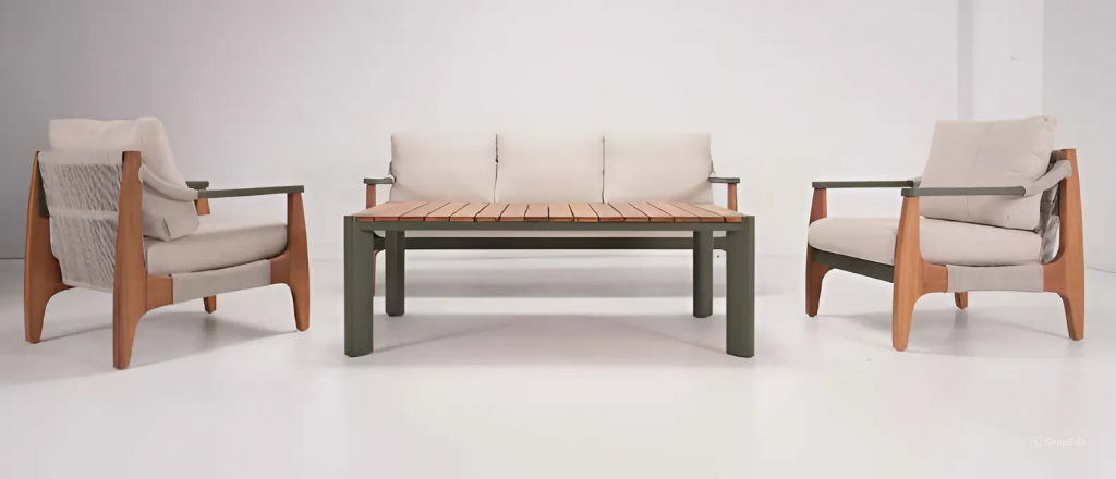 Стильный и функциональный лаунж комплект Elif — беспроигрышное решение для создания уютного пространства для отдыха на свежем воздухе. Этот комплект создан для тех, кто ценит качество, комфорт и современный дизайн. Элегантный и минималистичный дизайн гармонично впишется в любой ландшафтный стиль. Сочетание металла, дерева и плетения роупом создает атмосферу изысканности и уюта. В состав комплекта входят два удобных кресла, просторный трехместный диван и стильный деревянный кофейный столик.
