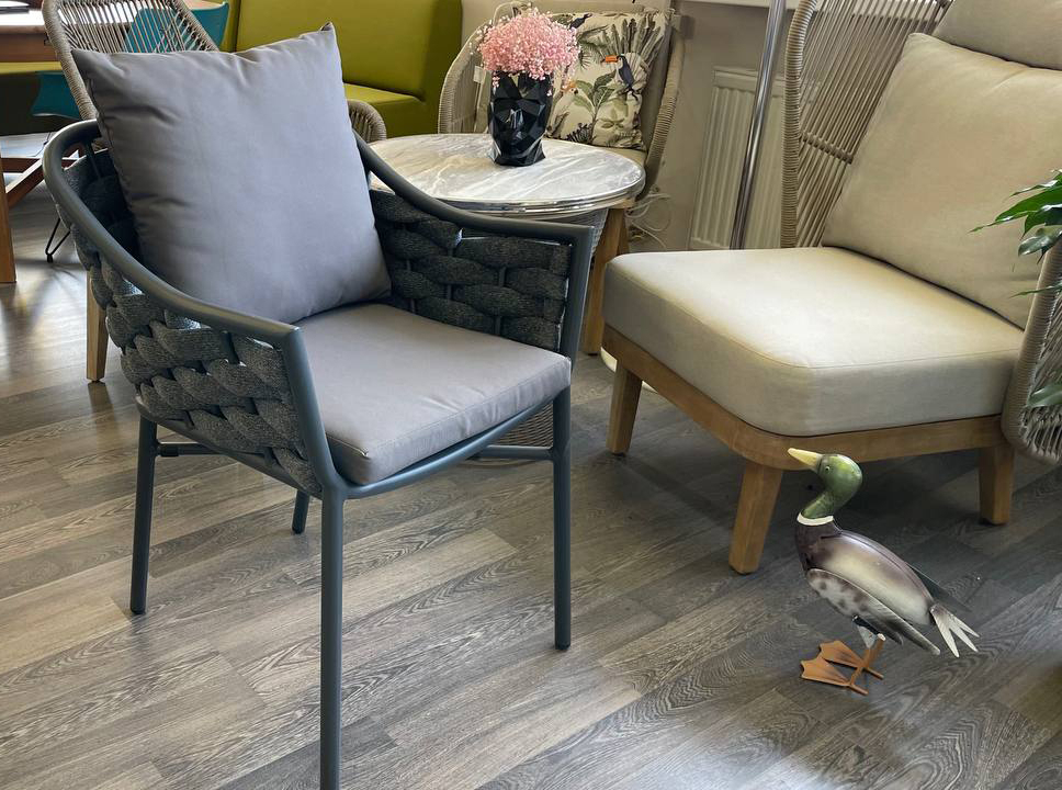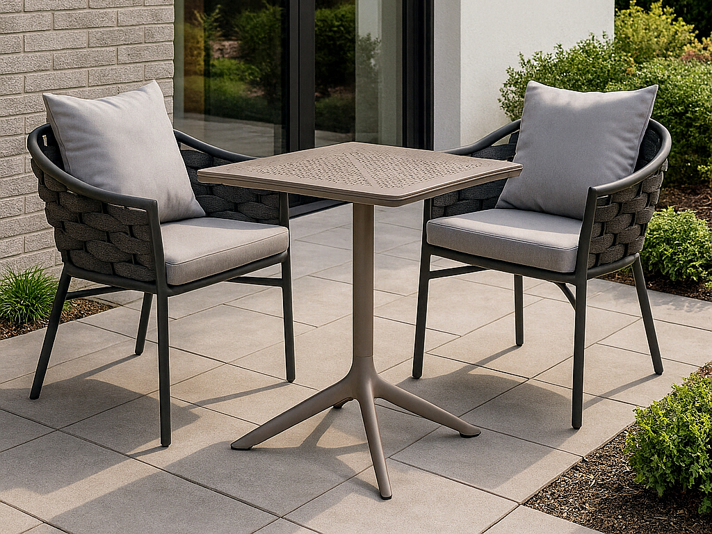 КомплектClip 70 Torinoсостоит из квадратногостола и двух кресел. Качественный и надежный стол Clip 70 представляет собой профессиональную модель из стеклопластика, состоящую из центральной колонны с 4-мя ножками и столешницы DurelTop, на которой выгравирован круглый перфорированный рисунок. Он дополняется двумя креслами Torino, которые привлекают внимание плетением спинок канатом роуп. Алюминиевый каркас кресел обеспечивает долговечность, а мягкие и удобные подушки на сиденье и спинке – необычайно комфортную посадку. Современный комплект с гостеприимным и доброжелательным дизайном превосходно украсит открытые террасы баров, ресторанов, отелейили небольшихчастныхзимнихсадов. Особенности: Каркас стола выполнен из стеклопластика(полипропилен, армированный стекловолокном). DurelTop-это новая инновационная система в производстве столешниц, разработанная для достижения высочайшего уровня практичности, устойчивости и элегантности. Столешницы обладают антивандальными свойствами, выполнены из прочного многослойного пластика, на поверхности не остаются следы от сигаретных окурков.Качественные столешницы DurelTop не боятся воды и палящих солнечных лучей, не выгорают и не меняют цвет под их воздействием. Матовая отделка. Накладки на ножках с регулируемой высотой. Каркас кресел выполнен из алюминия Ø25х1.8 мм, который является одним из наиболее коррозионно-стойких металлов. Алюминий имеет защитное порошковое покрытие, которое предотвращает коррозию и делает этот материал подходящим для наружного применения. Цвет покрытия - антрацит (WT0005A). Спинка кресла выполнена из плетения веревки (роуп). Материал - олефин темно-серого (CHN45-03) цвета. Как и другие синтетические материалы, роуп рассчитан на любые погодные условия, и его можно оставлять на улице круглый год. В комплект входят подушкидля сиденья и спинки из акрила. Цвет - темно-серый (BP006). Наполнитель подушек: на спинке: синтепух;на сиденье:поролон. Размеры подушек: для сиденья - 40х44х5 см и для спинки - 43х43 см. Состав комплекта: Стол пластиковый обеденный Clip 70, размер: 700х700х750 мм–1 шт. Кресло плетеное с подушками Torino, размер: 580х570х790 мм–2 шт. Открыть инструкцию по уходу.