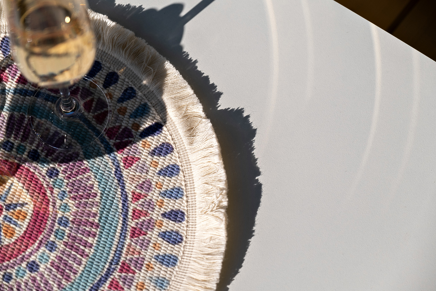 Лаунж-зона «Милан», рассчитанная на размещение четырех персон, станет стильным центром вашего открытого пространства. Комплект включает в себя двухместный диван, два удобных кресла и журнальный столик. Прочный алюминиевый каркас с белым муаровым покрытием, оплетенный вручную бежевым круглым роупом, создает воздушную и надежную конструкцию. Мягкие подушки в бежевых чехлах дарят непревзойденный комфорт. Журнальный столик «Диего» с алюминиевым каркасом и столешницей из HPL молочного цвета идеально завершает этот утонченный ансамбль.