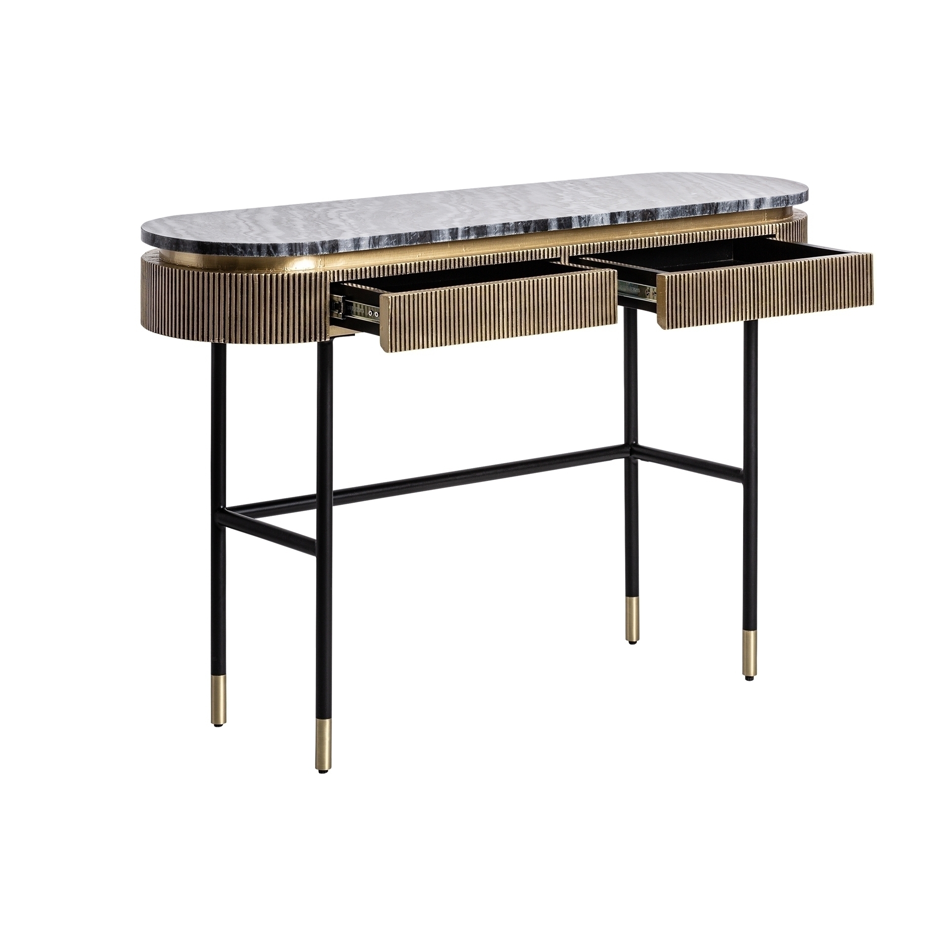 Консольный столик VALBRUNA, цвет золото, стиль арт-деко. Изготовлен из железа в сочетании с мрамором.