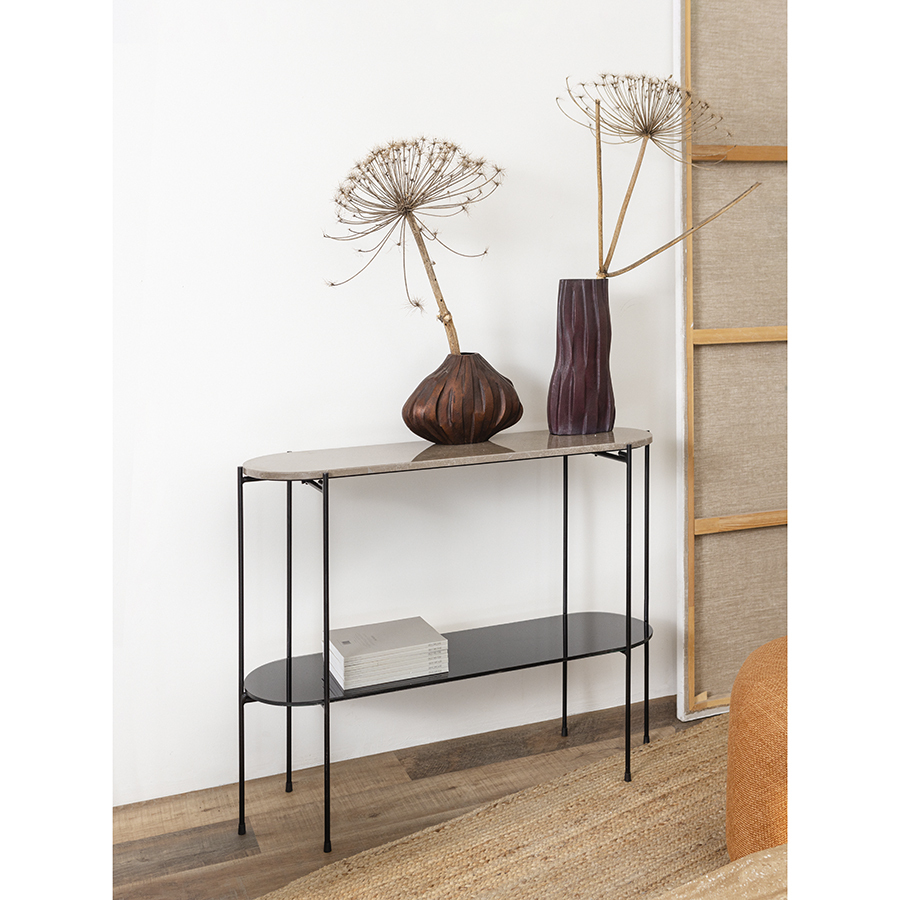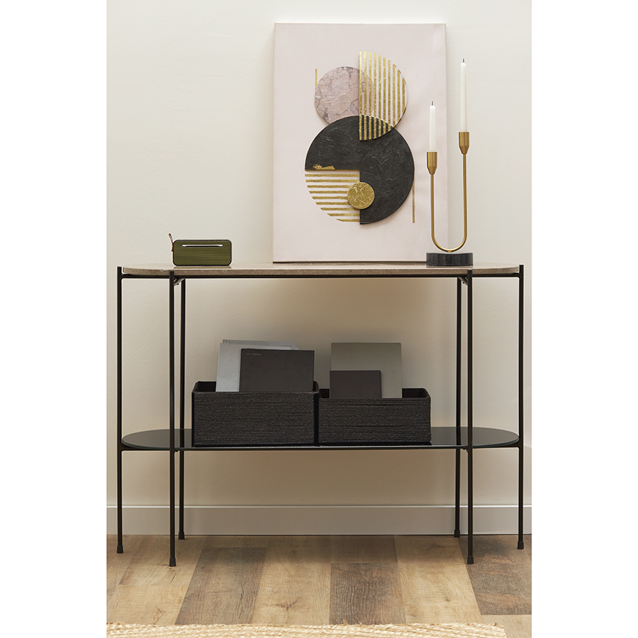 Стол консольный Sigryd от дизайнерского бренда Bergenson Bjorn идеально подходит для обустройства любых комнат в помещении. В гостиной он отлично будет смотреться у стены или рядом с диваном. Вы сможете разместить на нем рамки для фотографий, вазы, свечи и другие предметы для украшения пространства. В прихожей его можно поставить у дверей для хранения почты и других необходимых вещей. В спальне такой предмет мебели может выполнять функцию туалетного столика или комода. Особенности и преимущества: - Сочетание мрамора, стекла и железа обеспечивает модели презентабельный вид и высокую устойчивость к износу. - Материалы являются экологичными, практичными, долговечными, хорошо очищаются от загрязнений. - Благодаря компактности и небольшому весу стол можно легко перемещать и устанавливать в любом удобном месте. - Наличие двух столешниц позволяет размещать больше предметов. ! Обращаем ваше внимание, что этот предмет мебели изготовлен вручную и может быть не идеален. Небольшие неровности, потертости и различия в цвете – это не брак, а индивидуальная особенность товара, произведенного ручным способом. Материал: железо, мрамор, стекло. Размеры: 113х33х79 см. Пыль и загрязнения с поверхностей можно удалять при помощи мягкого влажного материала. Сразу после очищения мебель рекомендуется протереть сухой тканью. Запрещается применение жестких щеток, абразивов, порошкообразных и едких средств на основе кислот. Столешницу из мрамора важно беречь от горячих предметов. Если на столешницу случайно пролилась жидкость, ее нужно незамедлительно удалить, иначе могут остаться следы. Уже появившиеся пятна можно убрать при помощи специальных моющих средств для поверхностей из натурального камня. Для очистки стеклянной столешницы рекомендуется использовать средство для стекол.