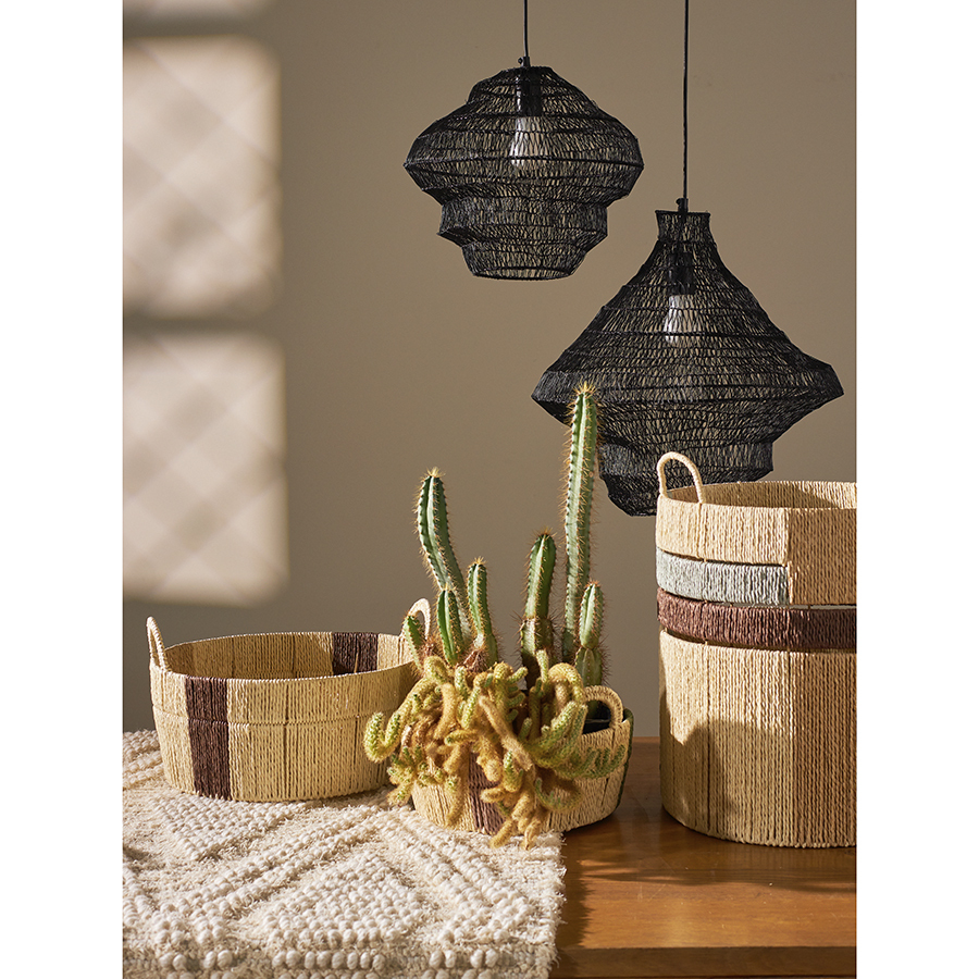 Корзина Bodhran Chocolate из коллекции Ethnic создана, чтобы украсить ваш дом и организовать удобное хранение белья и различных предметов. Этот полезный в быту аксессуар поможет воплотить мечту о красивом, уютном интерьере и за счет плетеного дизайна станет его акцентным элементом. Особенности и преимущества: - Изделие имеет железный каркас, благодаря чему обладает повышенной прочностью, хорошей устойчивостью, долго служит и не боится деформации. - Плетение из шпагата делает дизайн привлекательным и обеспечивает оптимальную вентиляцию, предотвращая скопление влаги внутри. - За счет нейтральной цветовой гаммы корзина без труда интегрируется в различные интерьерные решения, а удобные ручки облегчают ее перемещение. - Корзину можно использовать для хранения предметов в любой из комнат и как самостоятельный элемент декора. - Аксессуары в этническом стиле позволяют создать уникальный интерьер, отражающий личные предпочтения и вкусы своего владельца. Материалы: бумажный шпагат, железо. Размеры: 43x32x23 см. ! В случае попадания воды, незамедлительно протереть и высушить. ! Избегать взаимодействия с острыми предметами.